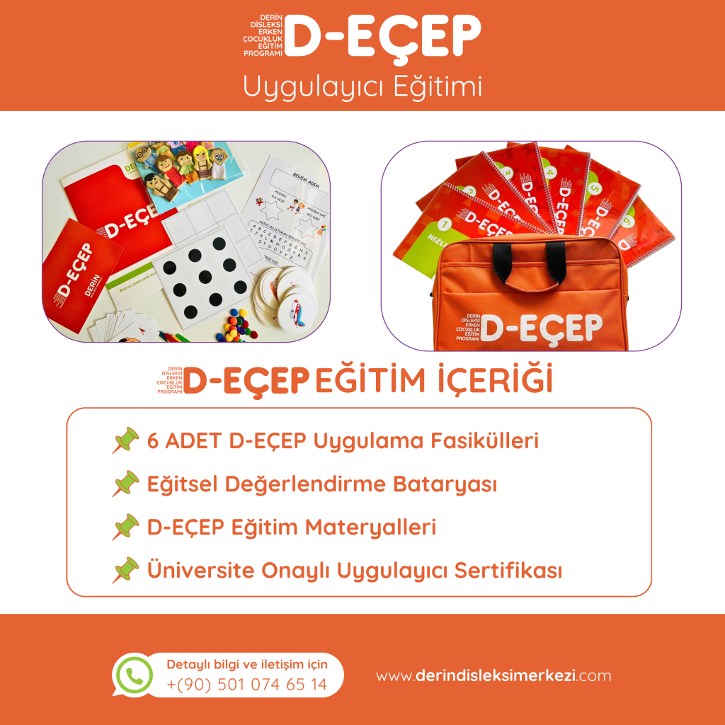 - DEÇEP; çocukların genel gelişimsel düzeylerini arttırmaya yönelik görsel algı,işitsel algı,dikkat geliştirme,alıcı ve ifade edici dil becerileri ,bellek geliştirme, erken okur- yazarlık becerilerinin geliştirilmesi ve sonraki yıllarda gerekli akademik beceriler için sağlam bir temel oluşturmak için hazırlanmıştır.